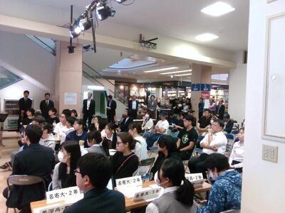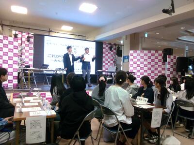 9月27日(土)拡大版ダイバソフィをイオン名寄店様に会場をお借りして実施しました。第1部は「これからの高校等について」~みんなで描いていこう~というテーマのもと、名寄高校生・美深高校生・名寄大学生・地域の方・保護者・教員がグループに分かれて「こんな学校だったらワクワクする」という意見を交換し、会場の観覧者もパドレットに意見を送信する形で参加していただきました。話し合いの状況は随時モニターで共有され、美深・名寄・下川商の校長がそれぞれの意見を取り上げてコメントをしました。1部のまとめとして、それぞれの意見をテキストマイニングし、「地域」「資格」「連携」などの単語が多く使用されていたことがわかり、今後の学校の魅力化につながる大きなヒントが得られました。