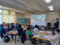 10月10日、地域学習の一環で町長との「みらいトーク」を実施しました。午前中は町長のガイドによるバスツアー。農産物やチョウザメの加工場や道の駅で町の産業や歴史的な背景を学びました。昼食はチョウザメのフライをはじめとした地元食材がふんだんに使われたお弁当と、キャビアの試食まで体験できました。